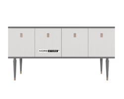 Mẫu kệ tủ gỗ hiện đại với phần chân cách điệu lạ mắt, sự kết hợp hài hòa giữa 2 gam màu xám - trắng khơi gợi cảm giác nhẹ nhàng, sang trọng và cuốn hút ánh mắt của bất cứ vị khách nào.